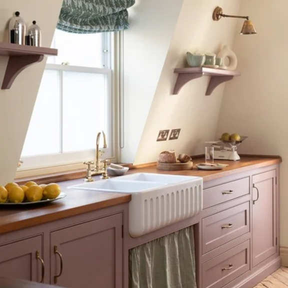 This creamy shade is only considered “new” because it looks much fresher than more traditional whites like Lime White. It will warm up any room with its soft lighting, working particularly well in a country kitchen alongside our other yellow-based neutrals. New White may appear milkier when contrasted with White Tie or cleaner when combined with India Yellow.