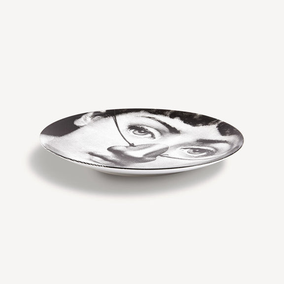 O rosto da cantora de ópera Lina Cavalieri, musa de Piero Fornasetti, embeleza este prato decorativo de parede em porcelana. Esta é a primeira decoração do que viria a ser a icônica série "Tema e Variazioni": uma verdadeira peça de colecionador, que se presta a ser exibida isoladamente ou em composições criativas com os demais pratos da série.