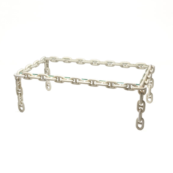 Rectangular coffee table, white chain-shaped base and glass top. Vintage piece.