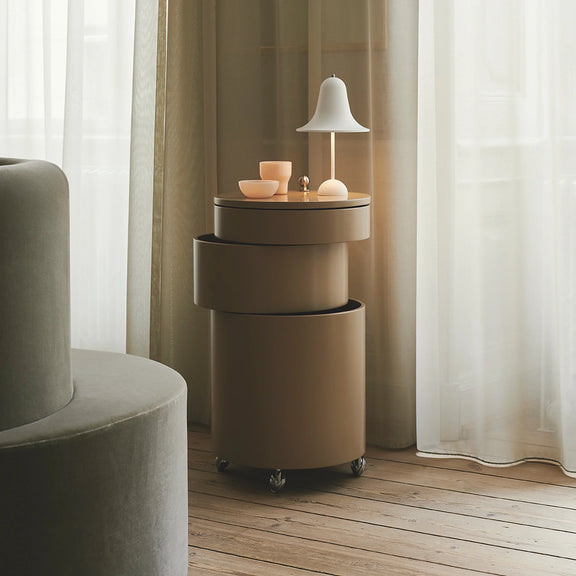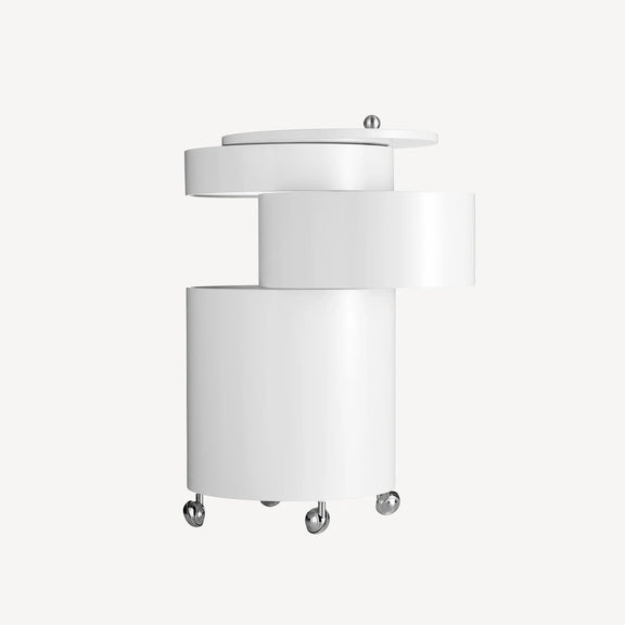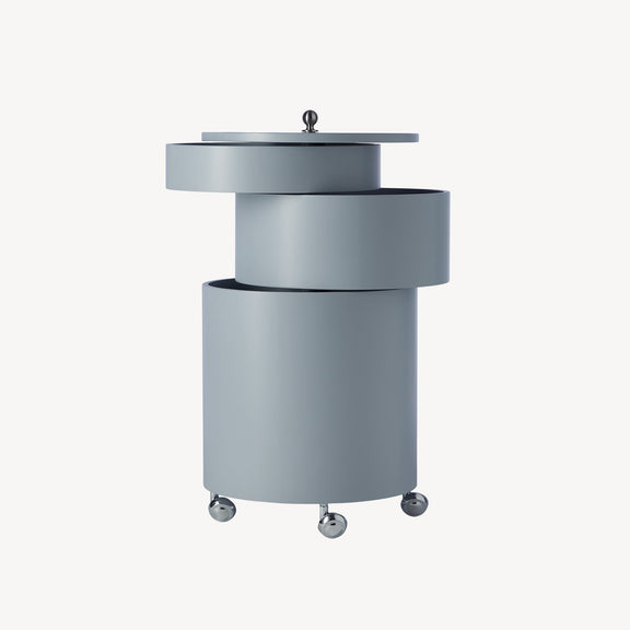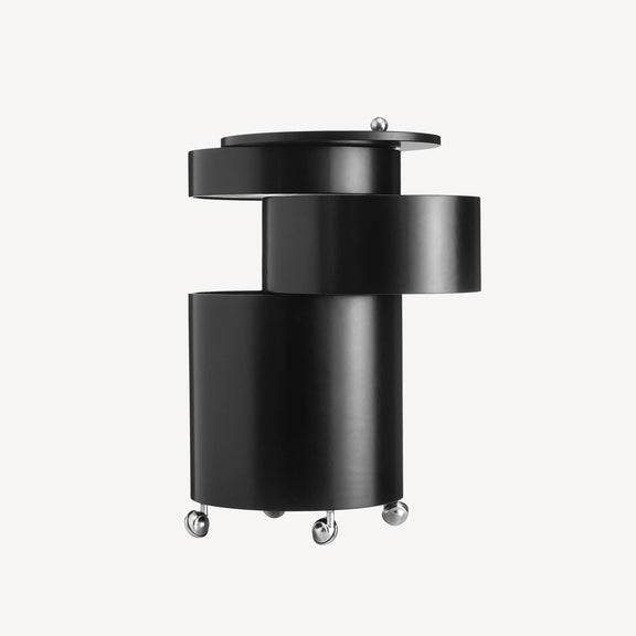 Adaptable side table and mobile storage unit in one. Barboy consists of three round drawers, which can be pulled out completely so that the entire surface can be used. Barboy is a typical example of Panton furniture, in which he combines a matte surface with a shiny chrome handle and wheels, giving the piece an elegant contrast.