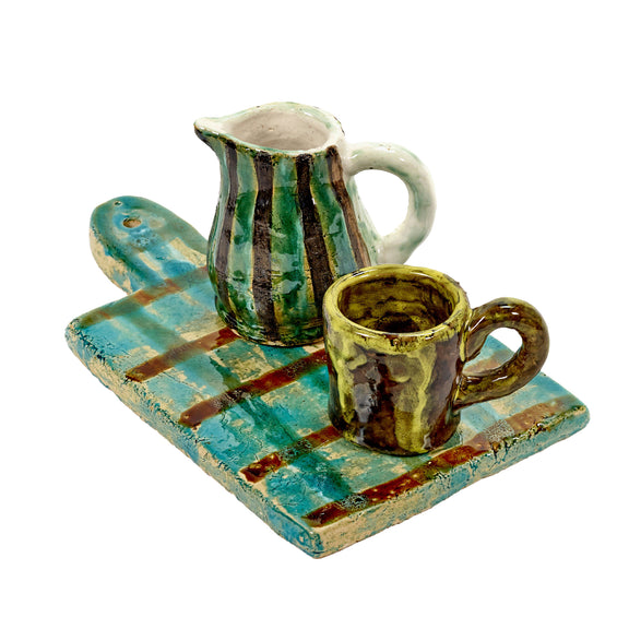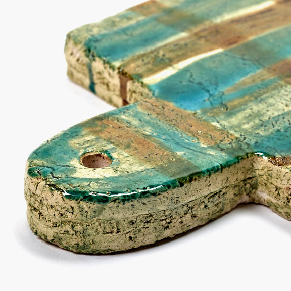 This tray brings travel stories to your table. The colors of the glazed clay and the robust design of the tray give it an authentic look.