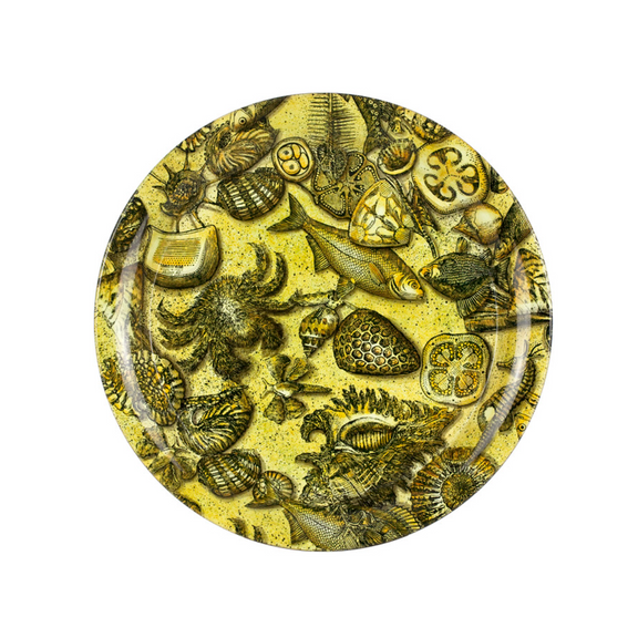 The circular shape and flat surface give great emphasis to the Atelier’s decorations. This tray is silk-screened and hand-painted. Combined with a folding stand, the tray can be transformed into a coffee table.
