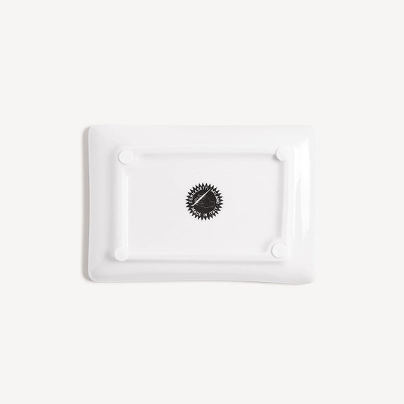 With this rectangular hand-painted porcelain ashtray, Fornasetti managed to transform an everyday object into a small work of art capable of seducing you with its decoration.