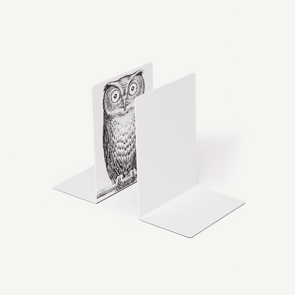 This pair of hand-screened metal bookends is embellished with the design of two owls: a foretelling symbol for an eye-catching addition to any shelf or countertop.
