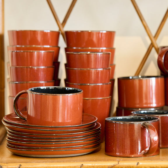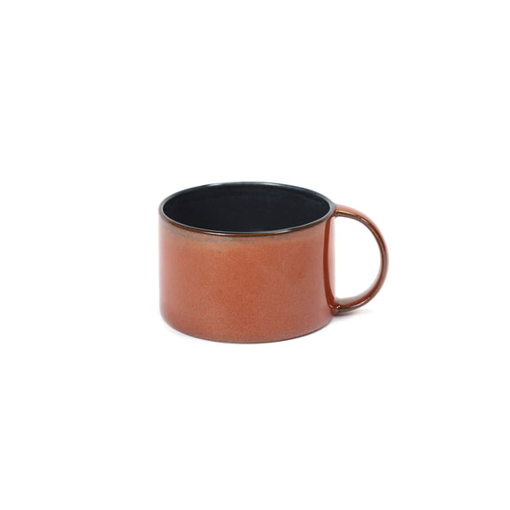 This coffee cup is made of clay and comes in dark blue with rust color. It is made of refined and glazed clay and is part of the Terres de Rêves crockery collection by Anita Le Grelle.