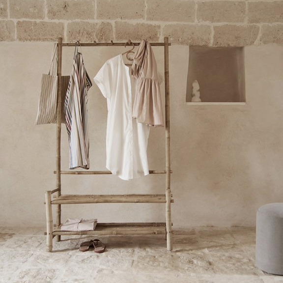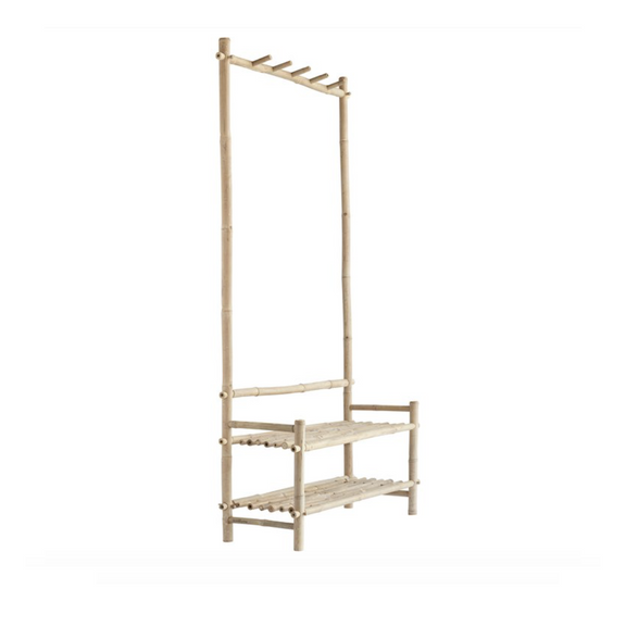 This bamboo wardrobe rack has 5 hooks and 2 shelves. Use the support in the hallway closet, or in the bathroom or bedroom. There are many possibilities for creating beautiful and decorative storage with this Scandinavian design.