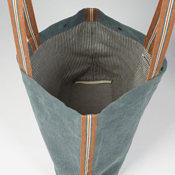 Shoulder bag. Stripe and strap details are all in pure linen.