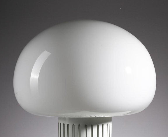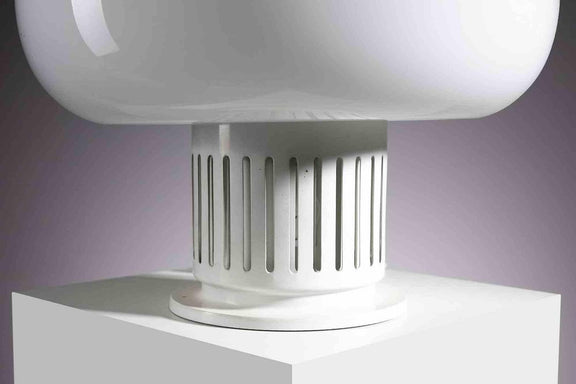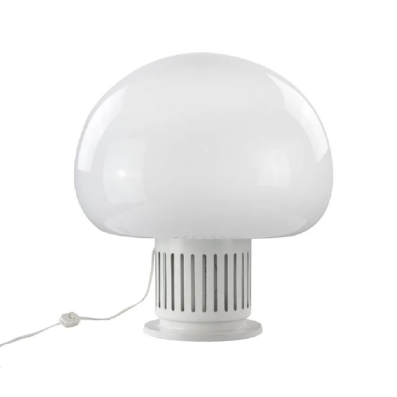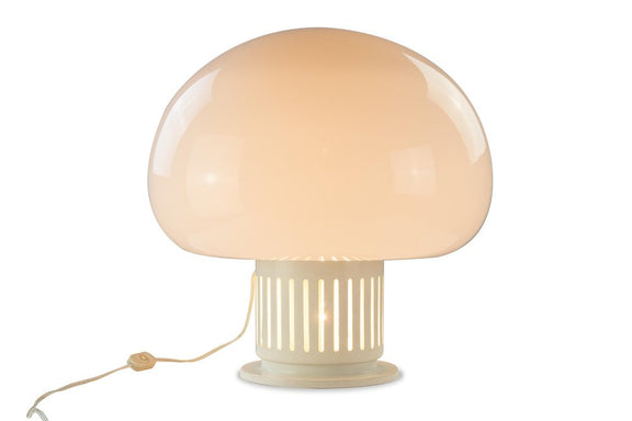 Candeeiro de mesa vintage Paola do Studio Tetrarch, Lumenform, Itália, 1960's. Vidro opalino e metal lacado a branco.