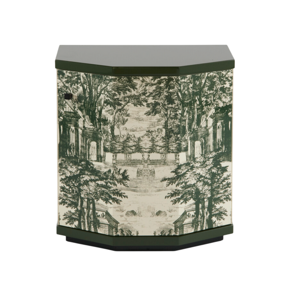 Mesa de cabeceira poliédrica Giardino Settecentesco verde/marfim - base preta.
