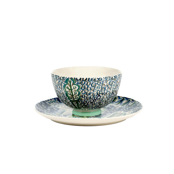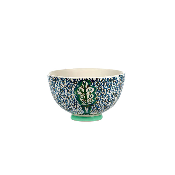This Bela Silva bowl is a tribute to picnics in grassy meadows, flowers and blue skies. The blues and greens and patterns add to the cheerful appearance of this earthenware dish.
