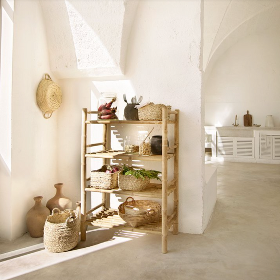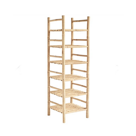Our collection of bamboo shelves/cabinets combines traditional craftsmanship and modern design. This bamboo shelf is handcrafted from whole bamboo stalks. Use it for extra storage, as a display for your beautiful interior and books or as a separate shelving system for towels in your bathroom.