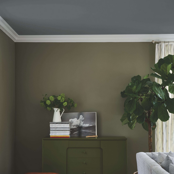 This long-lasting color is a dark green version of Farrow & Ball's classic Pigeon, hence its name for the green variety of the same species. Although it has a traditional feel, Treron is perfect for modern homes where lots of natural materials are used or as an accent to French gray and our traditional neutrals.