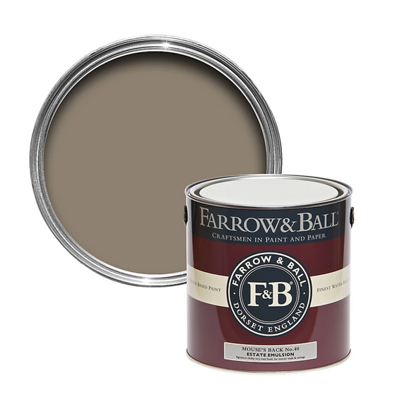 This classic greyish brown takes its characteristic name from the fawn color of the British field mouse. Much like its namesake, the green-based Mouse's Back is quiet by nature and feels soft in environments large and small. It will appear greener when used on walls in dimly lit rooms and is the perfect accent on furniture or floors when combined with more traditional tones such as plaster and lemon white.