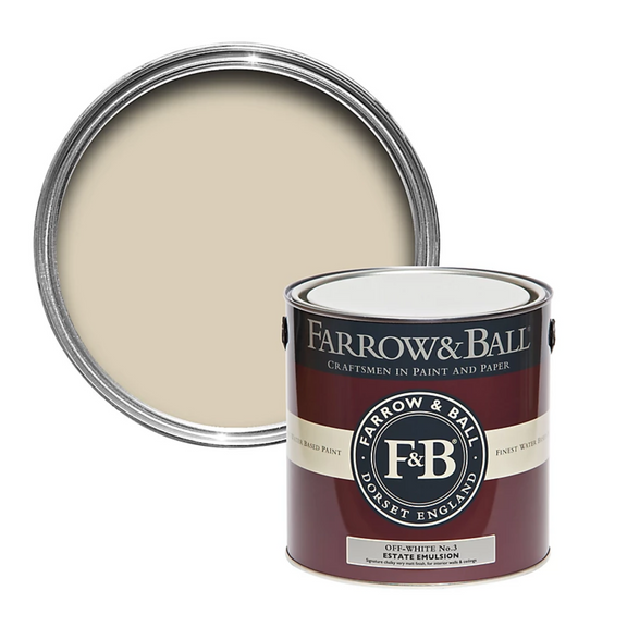 This medium off white shade is one of Farrow & Ball's original colors - an uncomplicated name for a timeless classic. Off-White sits within our Traditional Neutrals, so it works perfectly with Old White, Slipper Satin, and Lime White. The underlying green gives it an unmatched softness, creating a traditional, chalky wall color or sophisticated woodwork tone. Off-White is also great for use on floors, reflecting light off walls while maintaining a soft, warm feel.