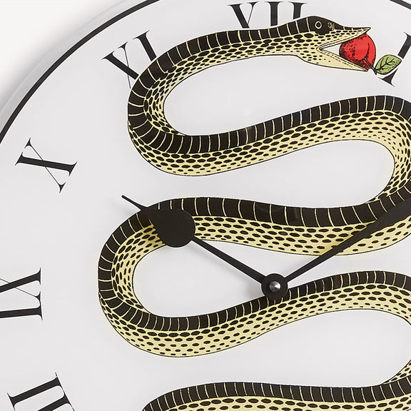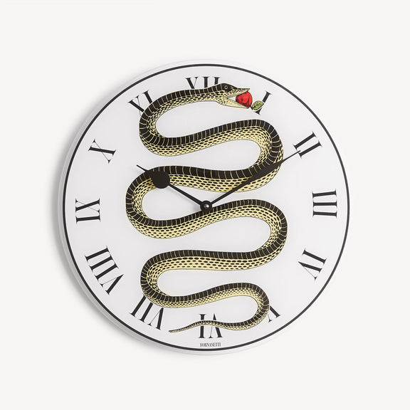 As formas sinuosas de uma cobra tentadora cruzam-se com um leito de folhas. Representando um eterno símbolo de sedução, a decoração deste relógio é a expressão perfeita da estética atemporal de Fornasetti.