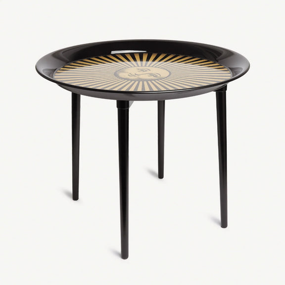 As alças da estrutura de madeira dobráveis permitem transformar o tabuleiro numa pequena mesa. Um simples objeto do cotidiano adquire assim uma nova função de uso e prazer.