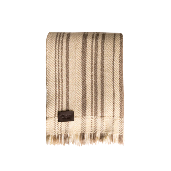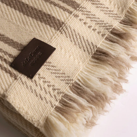 Confeccionada na Bulgária com lã proveniente diretamente de pastores das Montanhas Ródope, esta peça é uma verdadeira expressão de artesanato rastreável e sustentável. A lã é classificada por espessura e cor, depois fiada e tecida em teares manuais utilizando técnicas tradicionais transmitidas de geração em geração. Os fios possuem certificação Oeko-Tex, garantindo um processo livre de produtos químicos nocivos e com baixo impacto ambiental. Sem tingimento e tecida com a lã natural de raças raras de ovelhas búlgaras, o resultado é uma manta pesada e agradável ao toque, com excepcional aquecimento e durabilidade. Lavada em água pura de nascente da montanha, as propriedades naturais da lã são realçadas, conferindo-lhe resistência e maciez. Um design listrado multidirecional exibe estruturas de trama contrastantes na urdidura e na trama, formando um impressionante padrão xadrez em grande escala. Com acabamento em franjas curtas e etiqueta de couro marrom escuro com a marca LIFE, a manta é apresentada em um saco de algodão com certificação GOTS e caixa de presente. Perfeita para presentear ou para se presentear.