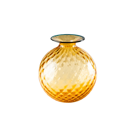 Parece macio, mas é de vidro.A ilusão de ótica está expressa em seu nome: Balloton, a tradicional técnica de sopro de vidro que recria o aspecto matelassê na superfície. Uma borda fina em cor contrastante trabalhada a quente ao redor da boca do vaso mostra o estilo característico da vidraria.