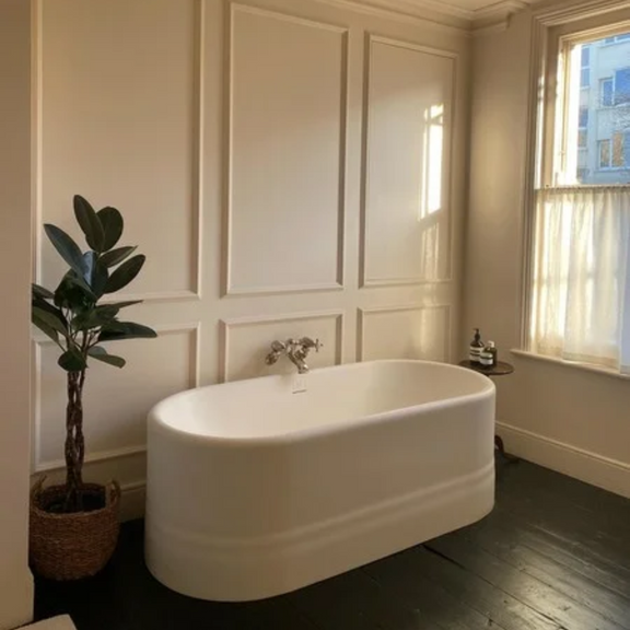 Dimity tem o nome do tecido leve de algodão originalmente usado para fazer anquinhas femininas, mas que agora é mais comumente usado para roupas de cama. Um dos nossos tons neutros de base vermelha, este cinza claro e suave está repleto de calor e uma profundidade incomparável, tornando-o perfeito para corredores elegantes e discretos. Pode ser combinado com All White e Pointing para uma leitura mais rosada, ou com a Oxford Stone mais escura em madeira para uma aparência ligeiramente envelhecida e descontraída.