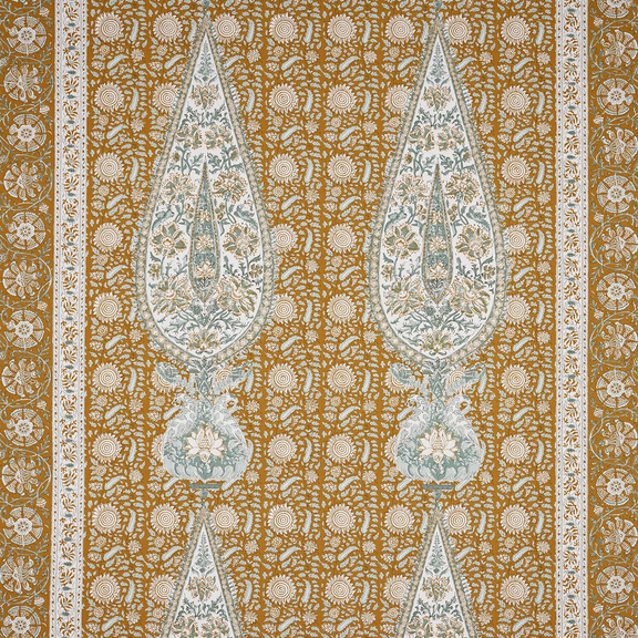 Tecido floral do século 18 criado para o mercado indiano usando impressão em algodão.