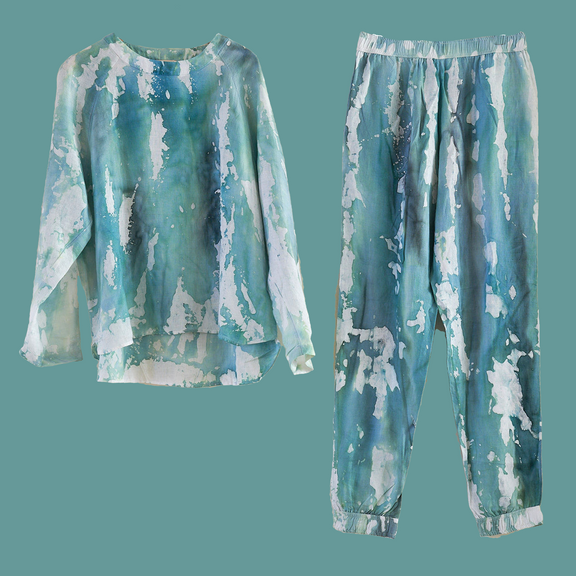 Pijamas feitos em 100% algodão. Cada pijama terá um padrão diferente pois as peças foram individualmente tingidos a mão.