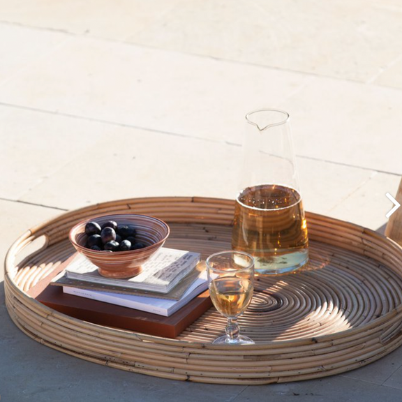 Bandejas em rattan com alças disponível em dois tamanhos. As bandejas são lindas para servir ou como base de apoio lindos objetos.