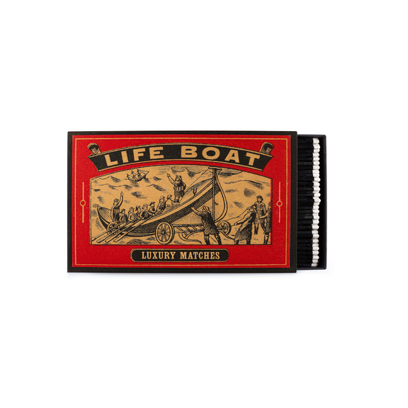 Maior e melhor do que qualquer outra caixa de fósforos! Esta caixa de fósforos gigante Lifeboat é superdimensionada e preenchida com dramáticos palitos de fósforos extra longos com ponta preta e branca, um must para qualquer amante de fósforos. O "Lifeboat" é um dos favoritos há já algum tempo, pelo que era apenas uma questão de tempo até estar destinado a ocupar o centro do palco numa caixa gigante! Concebida pelas mentes criativas da Archivist.