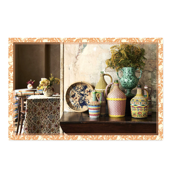 Cada cópia é encadernada em um dos quatro tecidos Cabana criados em colaboração com Schumacher – Sasha Diamond Ikat, Daria Paisley, Floral Sisal ou Saz Paisley. Os pedidos serão atendidos com um dos tecidos disponíveis, selecionado aleatoriamente.