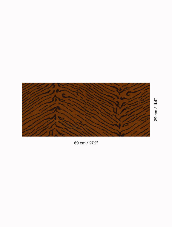 Um veludo jacquard de cores vivas interpreta a pele de um tigre, essa criatura mágica e misteriosa, em sua expressão mais pura e natural. A faixa vertical, lembrando as costas do tigre, confere uma cadência rítmica. Com um toque macio e denso, este tecido é adequado para aplicações de estofamento.