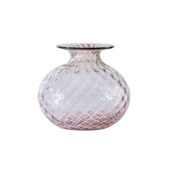 Parece macio, mas é de vidro.A ilusão de ótica está expressa em seu nome: Balloton, a tradicional técnica de sopro de vidro que recria o aspecto matelassê na superfície. Uma borda fina em cor contrastante trabalhada a quente ao redor da boca do vaso mostra o estilo característico da vidraria.