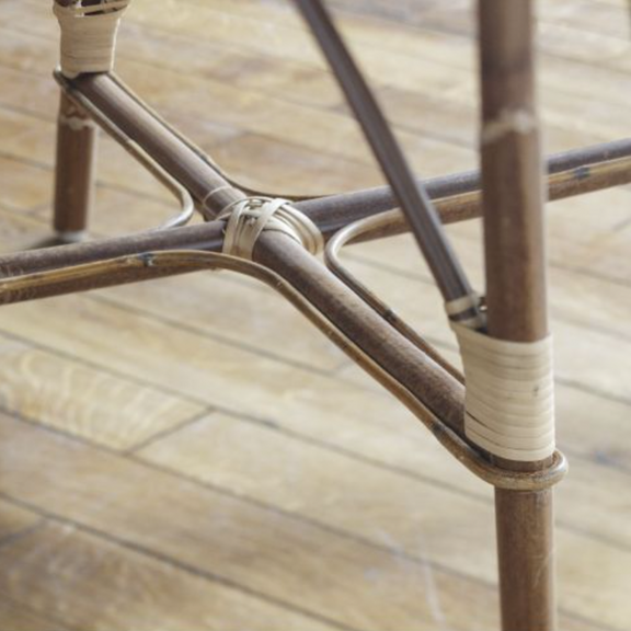 A cadeira de rattan Bagatelle é um ícone do vime francês da Belle Époque. Para utilizar numa sala de jantar, em frente a uma secretária, numa varanda, num jardim de inverno ou num terraço coberto em dias de sol.