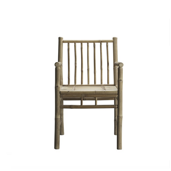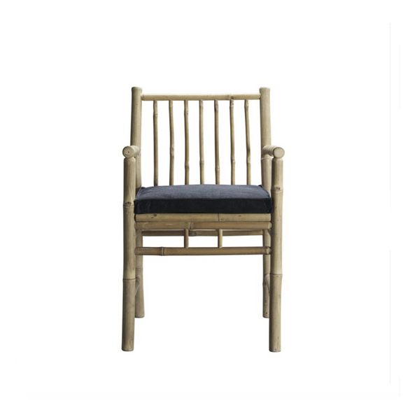 Cadeira de bambu com braços em design escandinavo. A simplicidade do design torna a cadeira fácil de integrar no interior nórdico. Você pode usar a cadeira como cadeira de mesa de jantar, cadeira de escritório ou como poltrona no terraço. Use a cadeira de bambu tanto em ambientes externos quanto internos. Combine a cadeira com uma das nossas almofadas, o que torna a cadeira confortável para sentar.