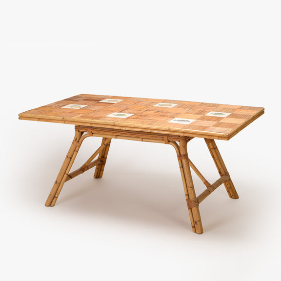 Vintage rattan and ceramic sideboard. Aparador vintage feito de rattan e bambu com azulejos de cerâmica de Chassin. Este é um trabalho de qualidade que remonta os anos 50.