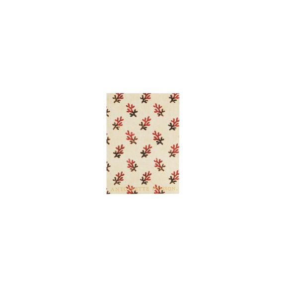 Este pequeno caderno, com uma capa macia decorada com o padrão "Corail" da nossa coleção "Ruth Ribeaucourt x Antoinette Poisson", tem uma bonita etiqueta e margens douradas.