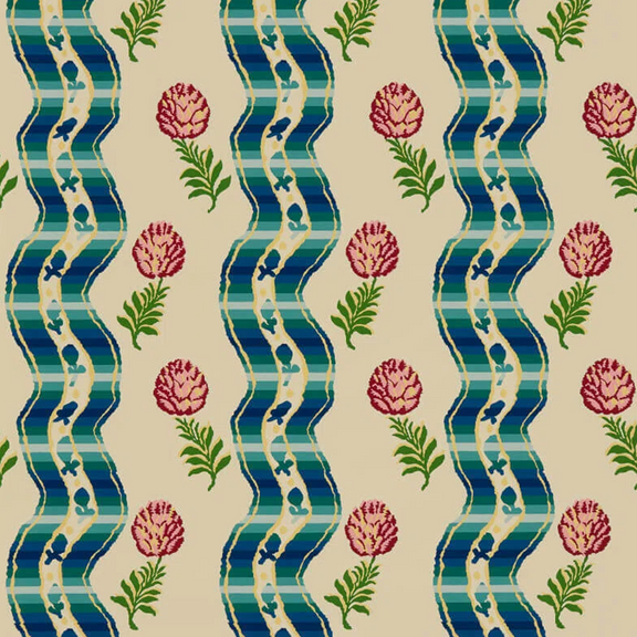 O motivo deste papel de parede reproduz um Valoise do início do século XVIII. Este foi mencionado nos estatutos corporativos de 1669 e é feito de um tecido de seda muito fino que estava na moda no final do século XVII e início do século XVIII. Com um brilho extraordinário, é embelezado com vários motivos, principalmente flores. Este documento foi várias vezes utilizado por Le Manach, que primeiro o reproduziu em lampas antes de o transformar numa das estampas emblemáticas da sua coleção sob a referência L2454. Serigrafia à mão.