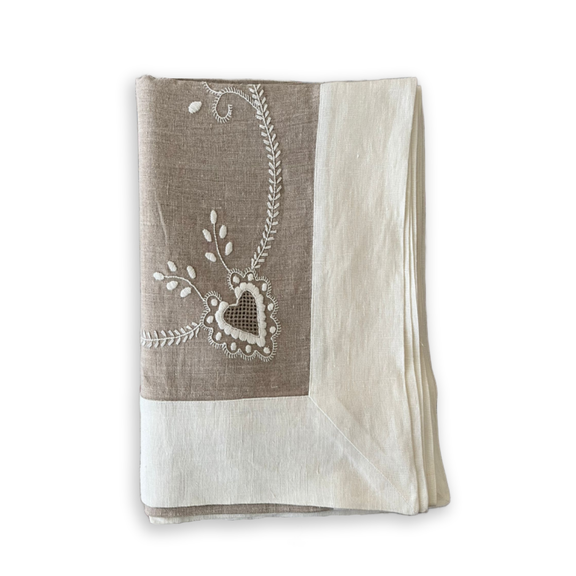 Toalha de mesa e guardanapos com bordado artesanal da região de Viana do Castelo da artesã Isilda Parente.