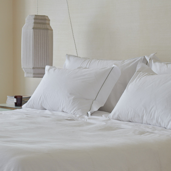 Conjunto de lençol de cama, parte de cima e parte de baixo.
